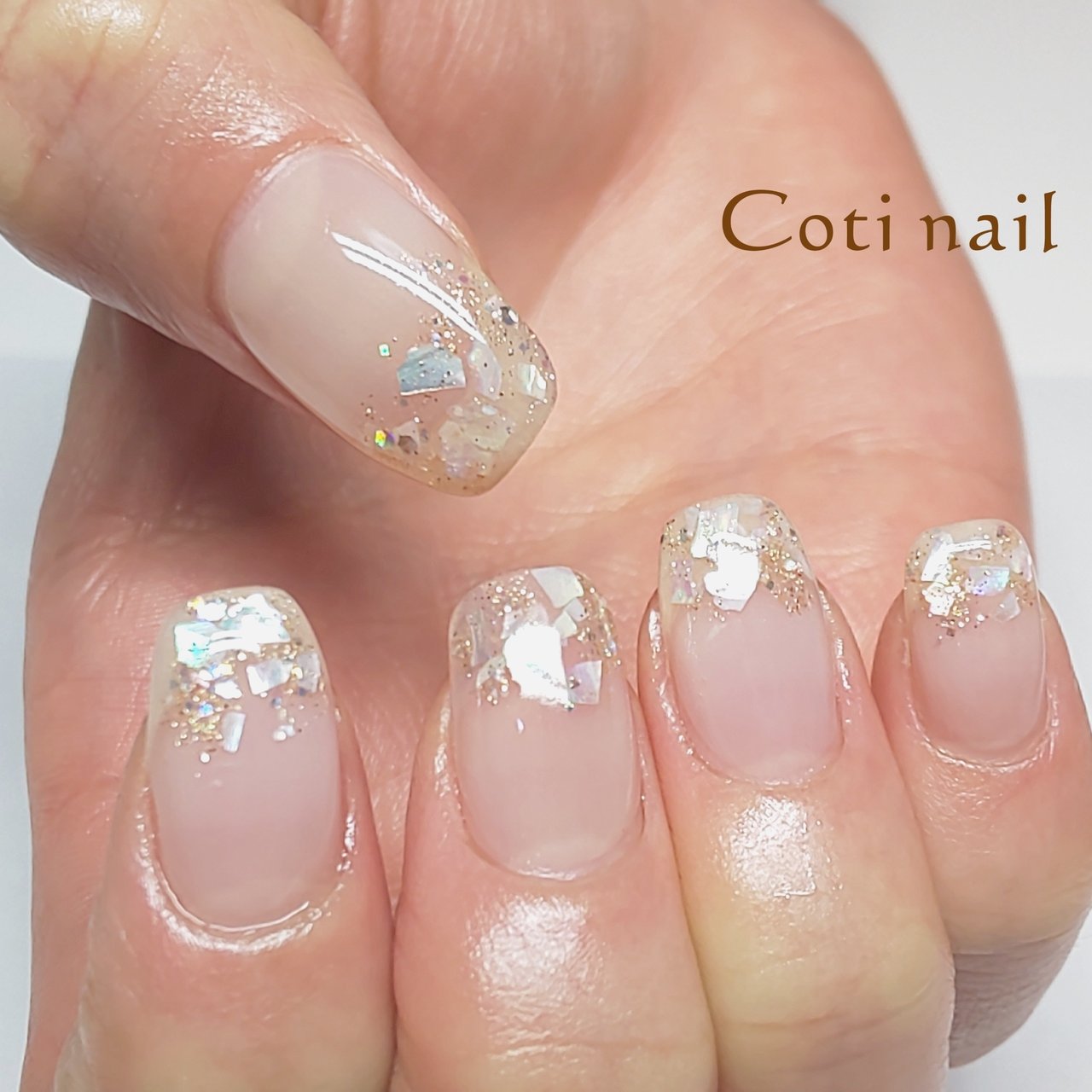 サンプルデザインより ラメネイル ラメグラデーション ニュアンスネイル ジェルネイル シェルネイル シンプルネイル グラデーションネイル クリアネイル ネイルデザイン 大人ネイル 上品ネイル ブライダルネイル セルフネイル 美意識
