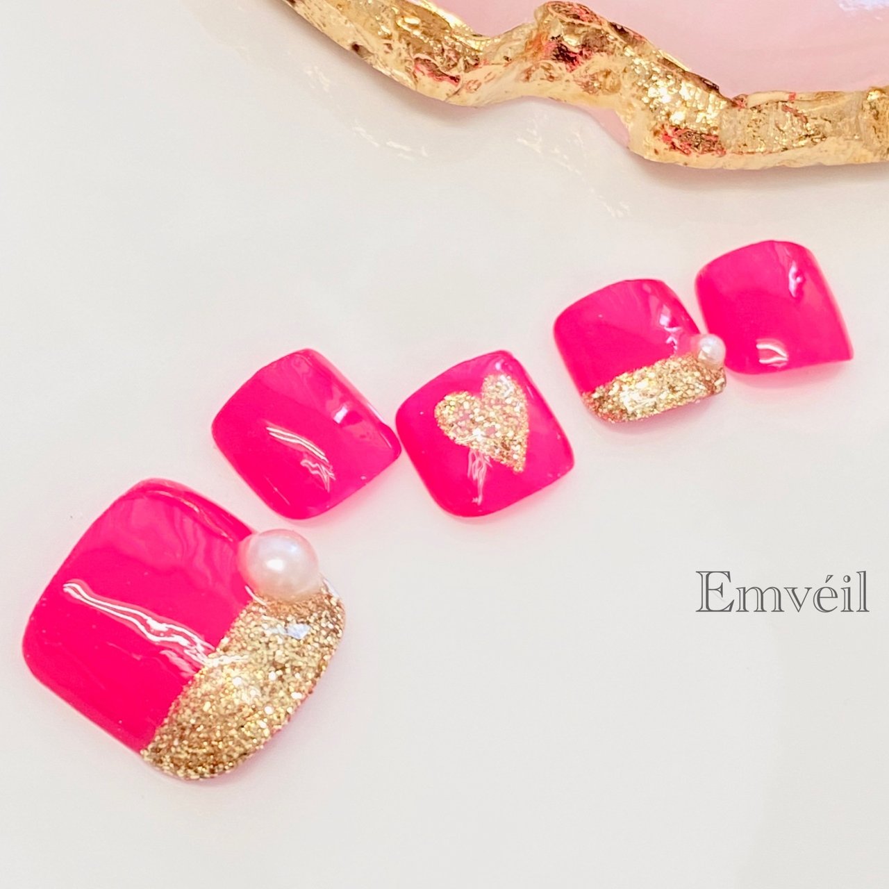 フットネイル 夏ネイル ネオンピンク ラメ ヒトデ 貝 海 横須賀ネイルサロン シャルール フットネイル