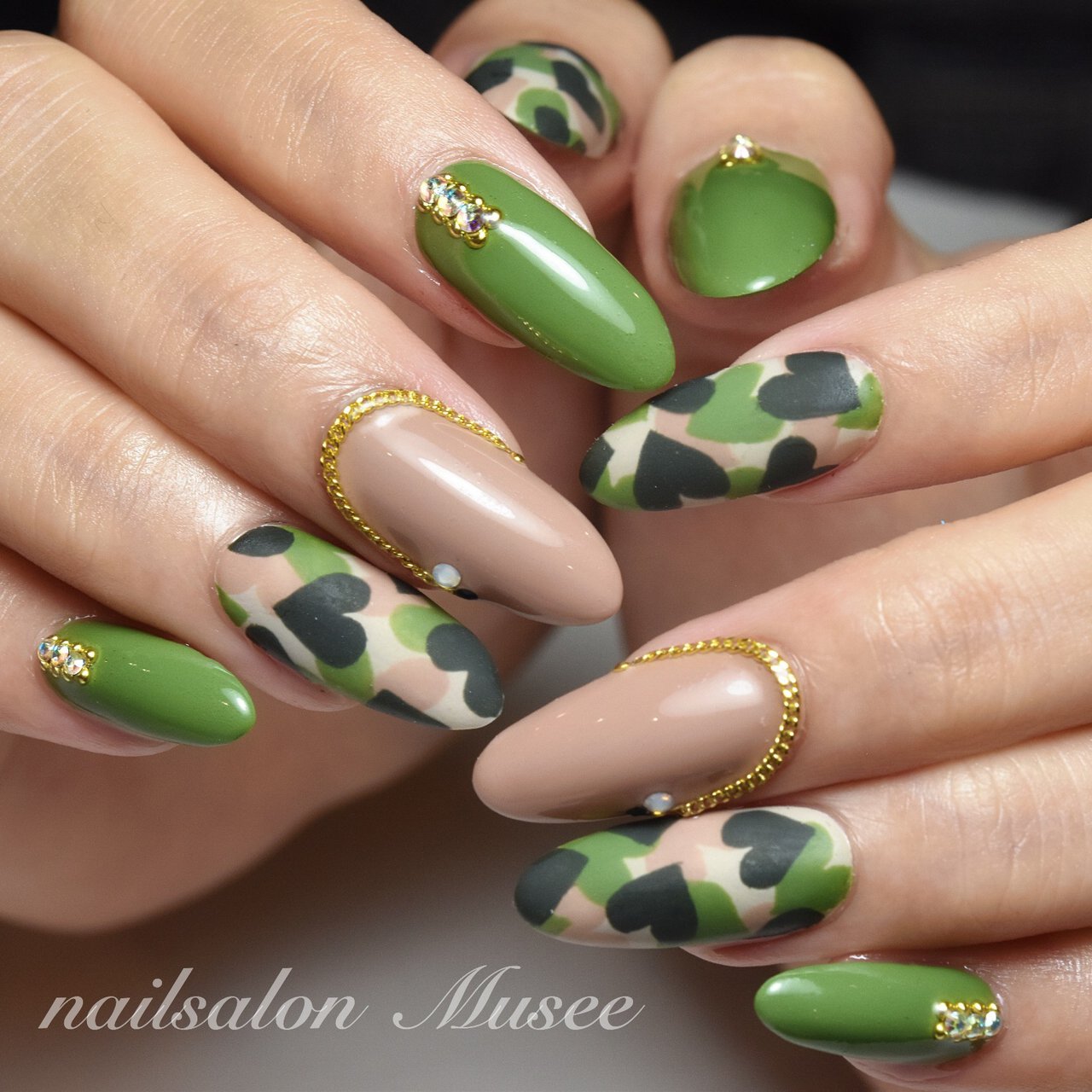 秋 冬 ハンド ハート カモフラージュ Nailsalon Museeのネイルデザイン No ネイルブック